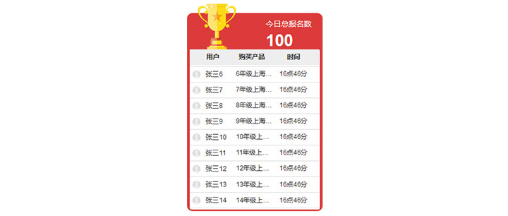 jQuery排名文字无缝循环向上滚动代码,鼠标悬停时会暂停滚动,适用于抽奖显示中奖人信息、排行信息列表文字上下滚动轮播展示效果。