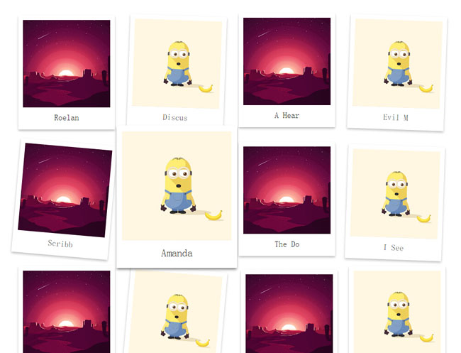 CSS3制作的一款鼠标移上去悬停放大照片墙代码,图片默认3行4列排列,带图片倾斜效果,鼠标经过放大突出方法显示图片。
