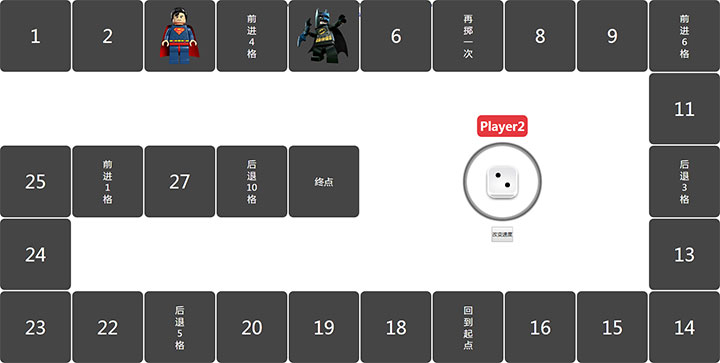 以蝙蝠侠和超人的形象制作的jQuery网页掷骰子游戏棋代码,先走到终点为胜利者。