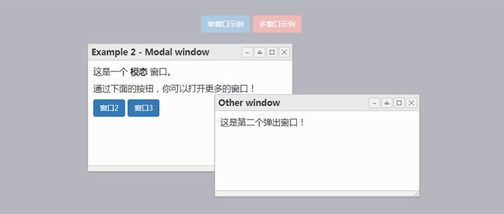 popupWindow.js是一款支持弹出多个窗口的jQuery弹窗插件,弹出窗口支持最大化、最小化、拖拽、改变尺寸等。