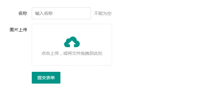这是一款jQuery基于layui制作的点击或拖拽图片上传表单代码,支持自定义输入图片名称并提交验证不能为空。