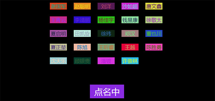 一款非常简单的jQuery多组名字排列随机点名代码,点击开始点名,名字闪烁随机选中一个名字高亮显示,有技术的朋友可以进一步美化界面。