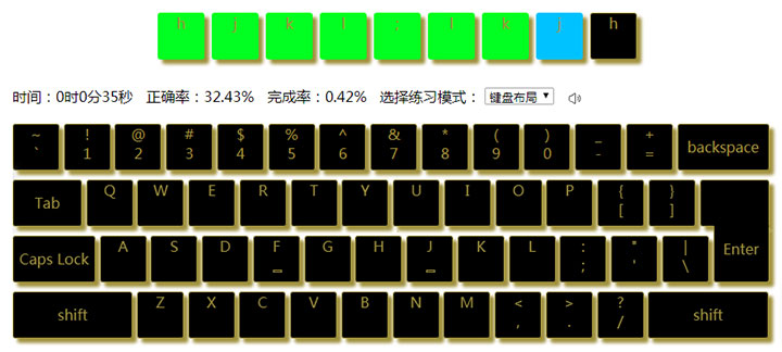 一款很益智的jQuery网页版键盘打字练习小游戏代码,可以帮助新手熟悉键盘提高打字速度。