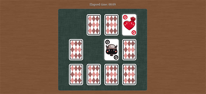 一款玩起来非常简单的jQuery扑克牌翻牌配对消除游戏源码,玩法:连续点击两张扑克牌进行配对,两张牌一样就消除。