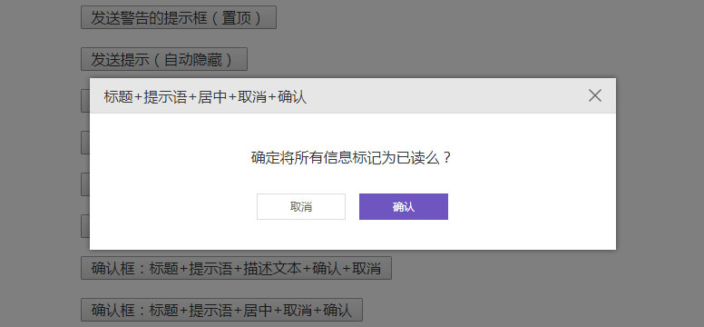 一款强大实用的jQuery点击弹出提示对话框插件,带20种效果,发送成功警告错误确认取消等各种提示框效果。