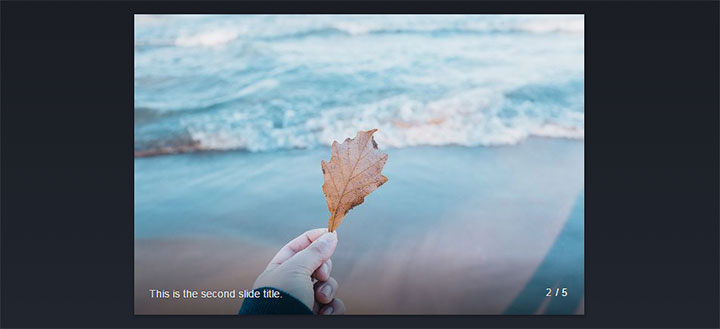 一款纯CSS3实现的点击图片切换下一张焦点图展示特效,鼠标悬停时显示图片标题和页码。