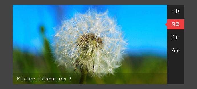 jQuery仿今日头条首页焦点图幻灯片轮播特效,非常实用的图片轮播代码,下方带半透明背景标题文字,右侧则是鼠标悬停滑动选项卡式索引按钮。
