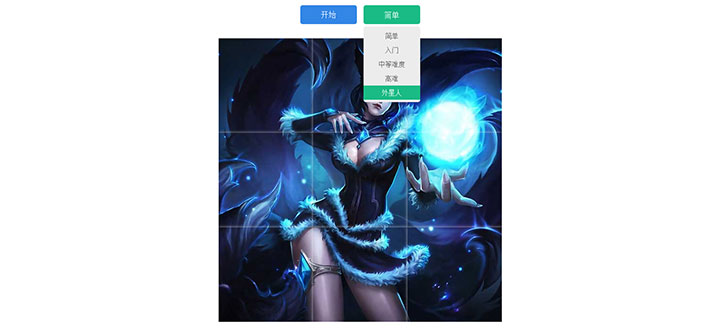 jQuery拼图小游戏代码是一款非常好玩的在线网页拼图游戏,可以选择挑战难度:简单,入门,中等难度,高难,外星人。