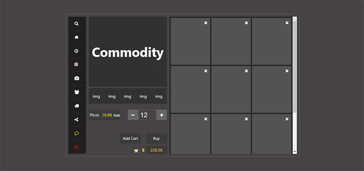 一款不错的jQuery UI商品图片展示及添加购物车结算代码,点击购物车小图标可以展开查看已添加购物车的商品。