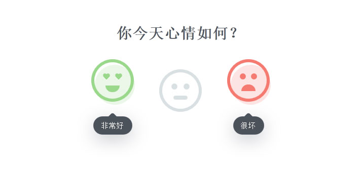 一组卡通风格简约可爱的jQuery+CSS3今日签到心情表情选择动画特效,适用于用户签到时选择自己的心情状态。