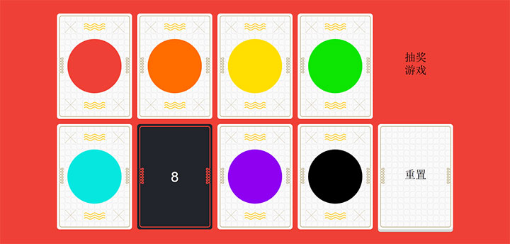 一款不错的jQuery扑克牌翻牌抽奖游戏代码,点击开始自动随机排列发牌,选择扑克牌确认翻牌得到抽奖结果。