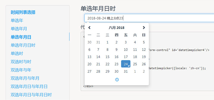 一款强大实用的基于bootstrap和jQuery日期时间选择器集合插件,日期和时间选择功能可以说是齐了,具体看演示。