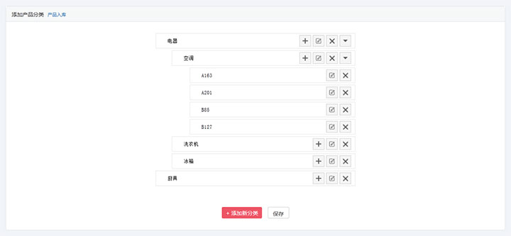 一款通常用在网站后台的jQuery添加编辑产品分类菜单代码,支持三级分类下拉菜单,可收缩展开。