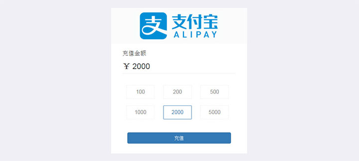 这是一款基于jQuery+Bootstrap实现的手机移动端支付宝金额充值表单页面代码,主要看选择充值金额的效果。