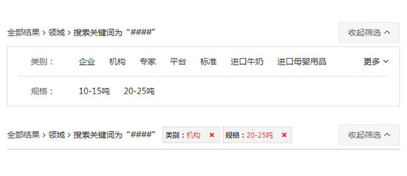 一款比较简单的jQuery多条件分类筛选代码,而且筛选框可以收缩展开,已选分类自动收缩起来,删除已选再度展开。