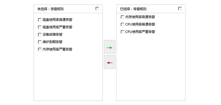 jQuery Checkbox列表双向选择移动代码,通过点击左右箭头按钮可以分别将两边div块中复选框已选中的列表项目在两边来回移动。