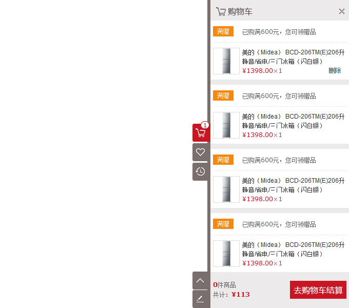 这是一款类似京东商城网站右侧边栏购物车功能菜单代码,jQuery仿京东侧边购物车代码,还有其他一些功能菜单。