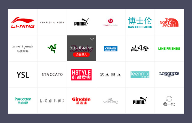 一款仿天猫商品品牌图片墙换一批jQuery动画特效代码。