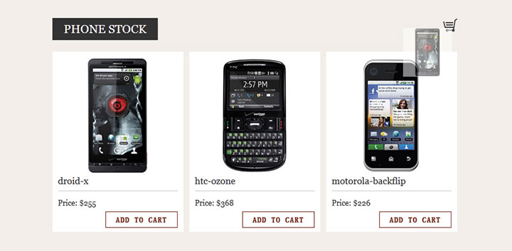 一个商城比较常用的jQuery加入购物车商品飞入动画特效,点击加入购物车按钮,商品图片飞入购物车图标里面,并通过抖动购物车来提示用户添加成功。