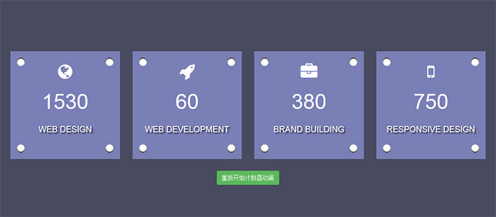 这是一款基于Bootstrap样式和jQuery实现的数字增长动画特效,可以作为一种网页计数器动画效果使用。