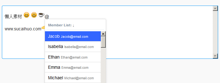jQuery仿新浪微博@功能代码是一款输入@就会出现下拉列表插件At.js的网页特效。
