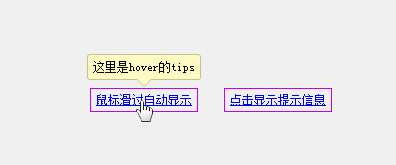 附件提供了两种jQuery效果,一种是鼠标悬停后的效果,一种是鼠标点击后的效果,支持hover显示文字或者图片