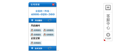 同样一款来自360shop官网的右侧在线客服代码,特殊样式倒是没有,唯一的推荐理由是其独特的设计风格,童鞋们可选择性使用
