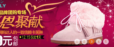 淘宝官方网站上部焦点图切换效果,IE浏览器下为方角效果,火狐、谷歌浏览器下则为圆角效果。