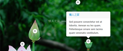 当鼠标悬停或者点击在热点位置的时候,会有一个立体式的弹出窗口说明效果,默认会自动切换显示。