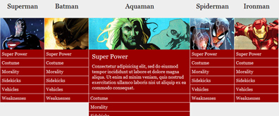 此jquery手风琴特效采用顶部图片,底部列表文字说明方式,当点击底部文字列表时,对应的一列依次放大,显示文字(图片)的全部。总体是此消彼长的关系