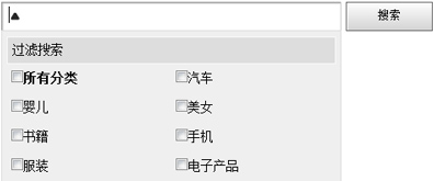当输入框获得焦点后,自动弹出下拉导航,可以选择搜索范围