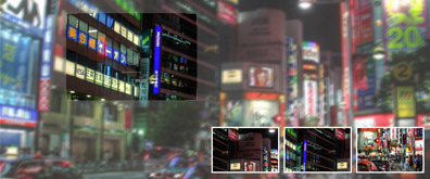三张相互切换的图片,图片均为模糊状态,鼠标移动到的地方变清晰,有类似望远镜的效果