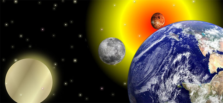 基于css3绘制的一款2D宇宙星空元素背景动画特效,有太阳、月球、地球、金星、流星雨等宇宙星空元素。