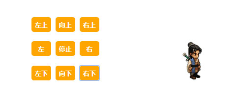 点击按钮控制卡通游戏人物奔跑方向js代码,点击哪个方向按钮人物就往相应的方向做奔跑动画,点击停止按钮即可停止奔跑。