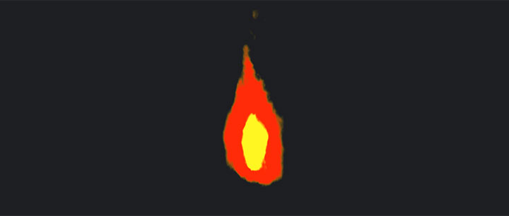 html5 canvas画布绘制燃烧的火焰动画特效,一簇火焰熊熊燃烧晃动着。