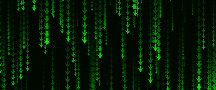 html5 canvas绘制一款全屏密集的绿色箭头雨背景动画特效,类似黑客入侵那种代码雨动画效果。