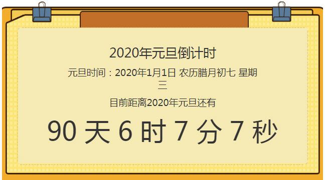 原生js实现2020年元旦倒计时特效,当然了,可以修改成任意节日日子的倒计时,只需修改截止时间即可。