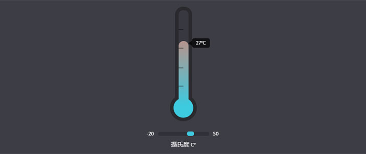 这是一款js+css3实现的温度计设置交互动画效果,左右拖动滑块控制温度计的摄氏度数。