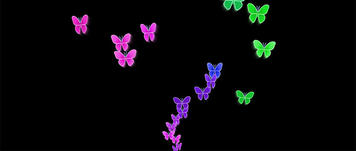 基于html5 canvas绘制的一款飞舞的蝴蝶动画特效,彩色蝴蝶向上飞动画效果。