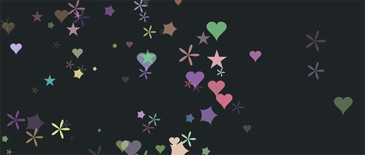 CSS3@keyframes属性制作五颜六色的花纹图案动画特效,星星、叶子、花朵、爱心混合动画效果。