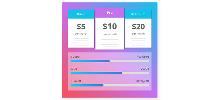 一款非常美观的CSS3鼠标悬停项目价格表内容TAB切换特效,TAB切换与下方的进度条交互效果棒极了。