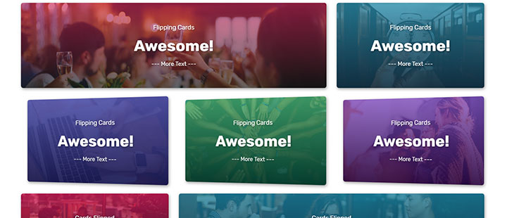js+css3响应式图文卡片自动翻转动画特效,翻转到另一面显示不同的文字内容,鼠标悬停和按下会有小幅度的放大跟缩小动画效果。