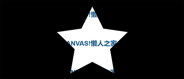 html5 canvas绘制的一款五角星探照灯文字动画特效,通过自动放大缩小五角星形状显示探照灯区域。