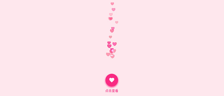 HTML5 Canvas绘制的圆形爱心点赞按钮冒泡动画特效,点击点赞按钮喷出漂亮的爱心气泡往上飘升动画效果。