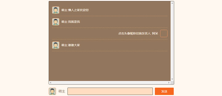 这是一款简单的原生js发布对话消息列表代码,发布留言评论效果,点击头像昵称切换发布对话消息。