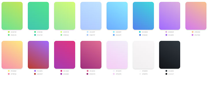 15种纯CSS3基于gradient属性制作的渐变颜色色板配色代码,带颜色参数,可在CSS样式自定义配置渐变颜色配色。