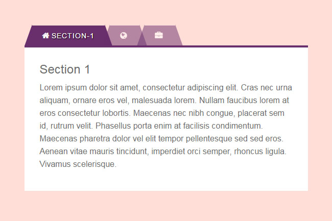 这是一款扁平风格基于Bootstrap原生Tab选项卡的基础上,使用Font Awesome图标与CSS样式来进行美化的动画选项卡特效。