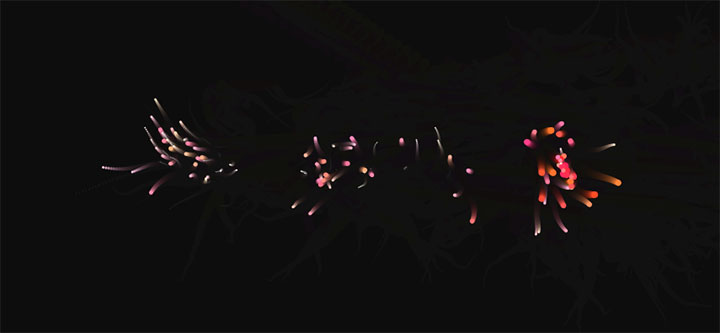 一款基于html5 canvas画布制作的鼠标点击拖动粒子动画特效,点击或拖动网页才会出现粒子动画效果。