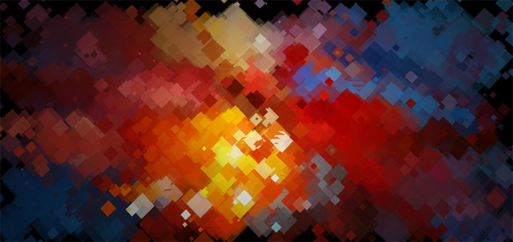一款炫酷的html5 canvas彩色马赛克散开动画特效,刚进入页面时还带有模糊动画效果。