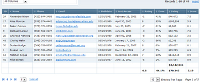 国外网站copy过来的一款表格筛选功能强大的js特效,支持无刷新翻页,关键词查询筛选,按照特定顺序排列,控制每页显示条目数等等